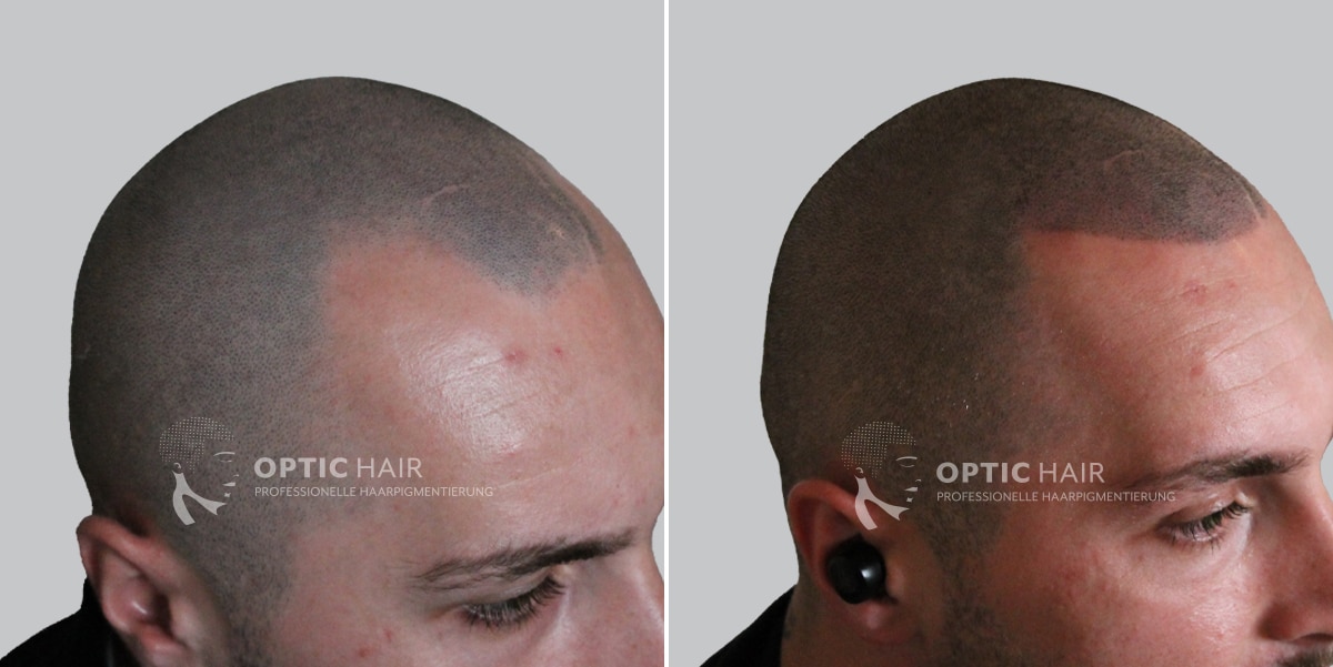 Die Haarpigmentierung ähnelt im Prinzip einem Permanent-Make-Up, denn die Pigmente werden auf die gleiche Art und Weise etwa 1,2 mm tief in die Kopfhaut eingeschleust. Da sie nur leicht durchschimmern, können Haarstoppeln damit imitiert werden. Ideal ist in diesem Fall natürlich eine rasierte Kurzhaarfrisur, obwohl auch bei längerem Haar optisch mehr Fülle erzeugt werden kann. Selbst wenn man aus nächster Nähe die Kopfhaut begutachtet, wird die Behandlung nicht auffallen.